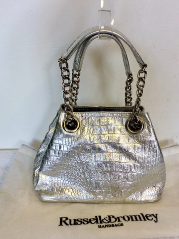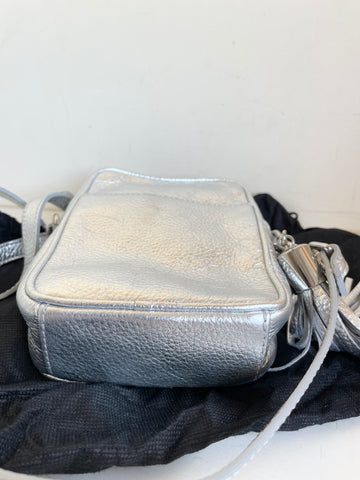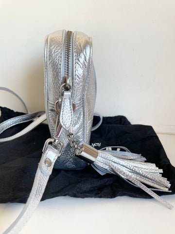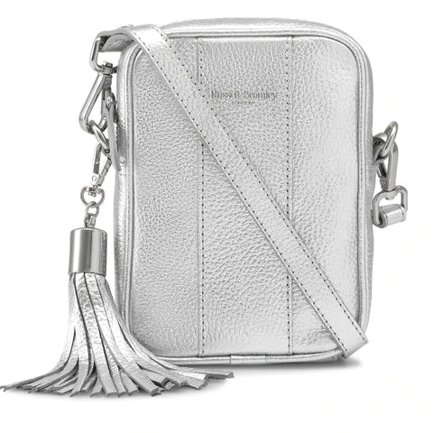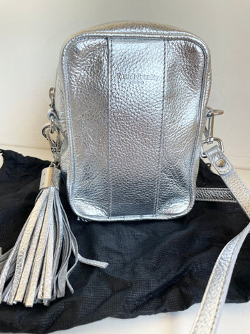 RUSSELL & BROMLEY SILVER METALLIC ROWLOW LEATHER CROSS BODY BAG
