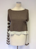 SARAH PACINI LIGHT BROWN & WHITE COTTON CROPPED JUMPER ONE SIZE
