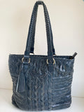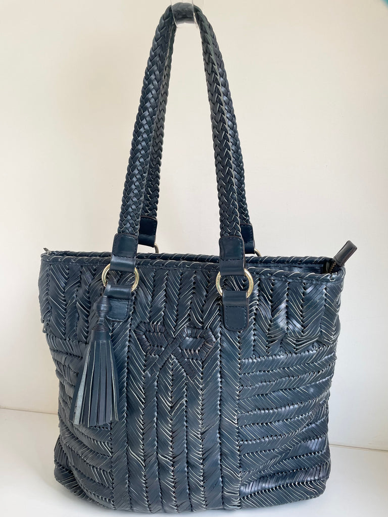 ANYA HINDMARCH DARK BLUE LEATHER WEAVE LARGE SHOULDER BAG