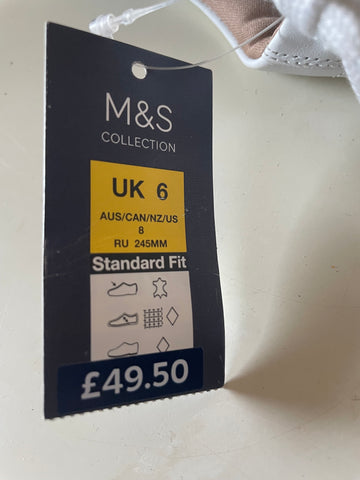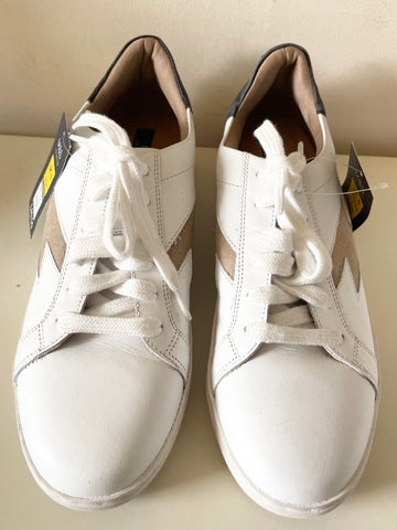 BRAND NEW MARKS & SPENCER WHITE & BEIGE LEATHER TRAINERS SIZE 6/39.5