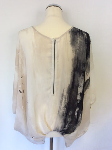 BRAND NEW SAHARA NAVY BLUE & IVORY PRINT SHORT SLEEVE TOP SIZE S/M