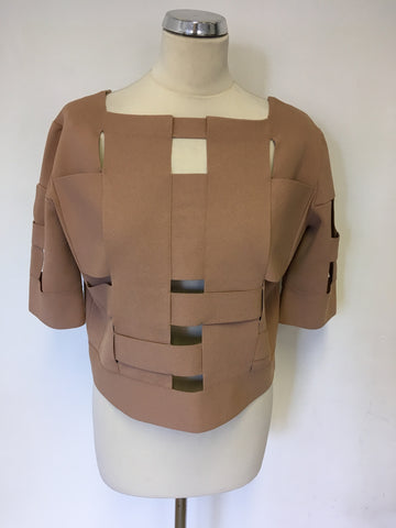 LAURENCE TAVERNIER FAWN WOOL & CASHMERE SHORT KNIT ROBE SIZE M
