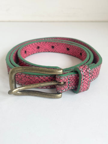 LIEBESKIND BERLIN CORAL & GREEN TRIM LEATHER SNAKESKIN BUCKLE BELT