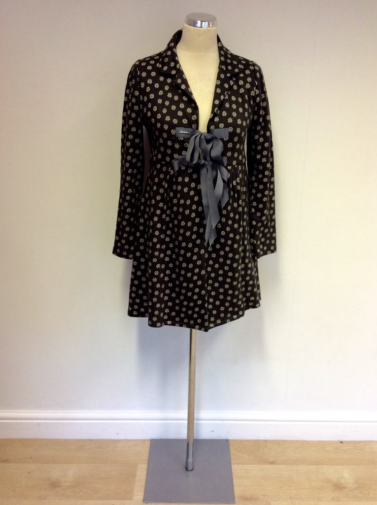 AVOCA DARK GREY PRINT TIE FRONT JACKET COAT SIZE 2 UK 12