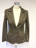 AVOCA ORIGIN BROWN HERRINGBONE WOOL BLEND JACKET SIZE 1 UK 8/10