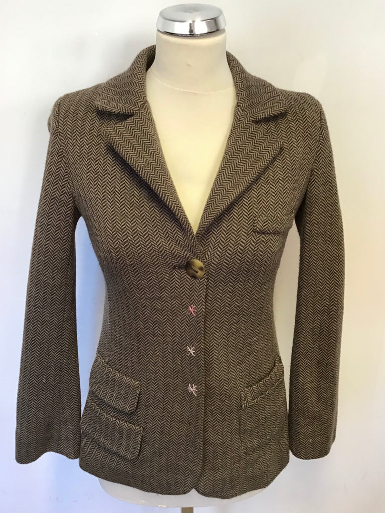 AVOCA ORIGIN BROWN HERRINGBONE WOOL BLEND JACKET SIZE 1 UK 8/10