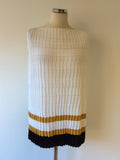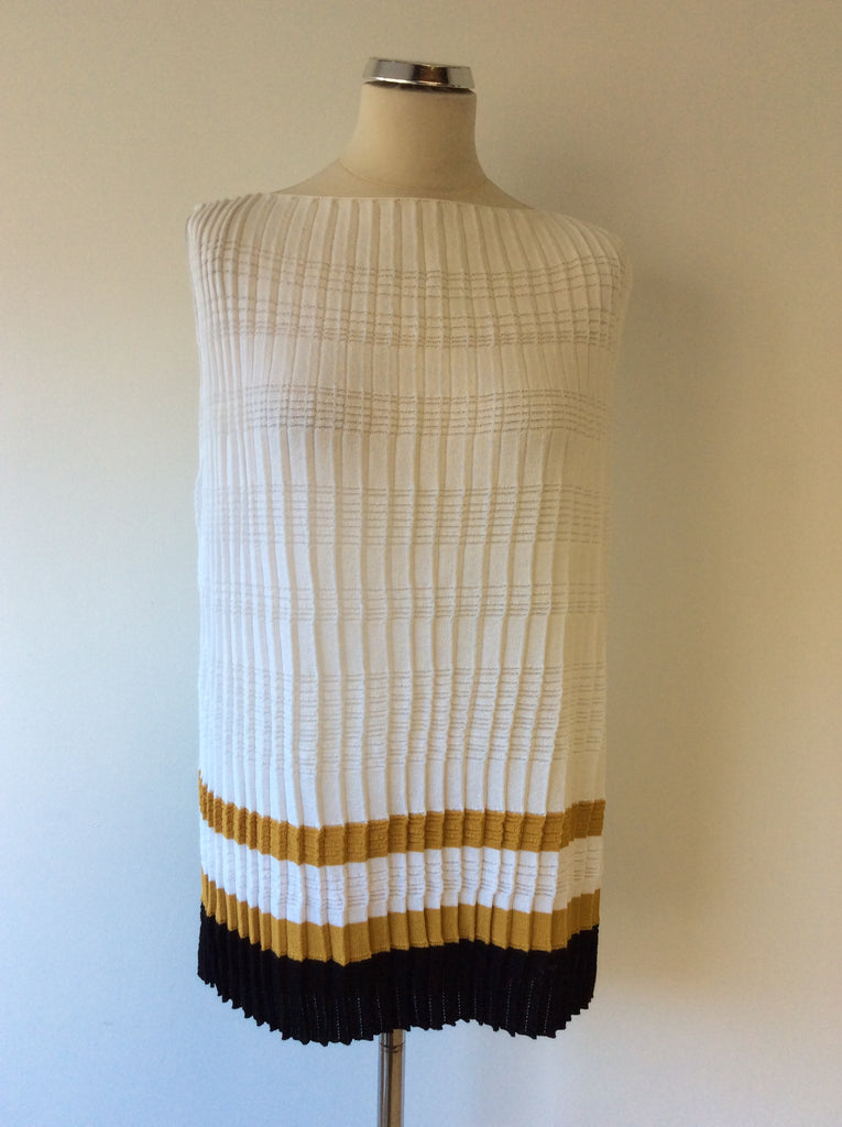 BIMBA Y LOLA WHITE WITH TAN & BLACK STRIPE PLEATED FINE KNIT TOP SIZE S