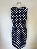 BODEN NAVY BLUE & WHITE SPOT SLEEVELESS PENCIL DRESS SIZE 14R