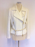 BRAND NEW LUISA SPAGNOLI WHITE ZIP UP CHAIN BELT JACKET SIZE 46 UK 14