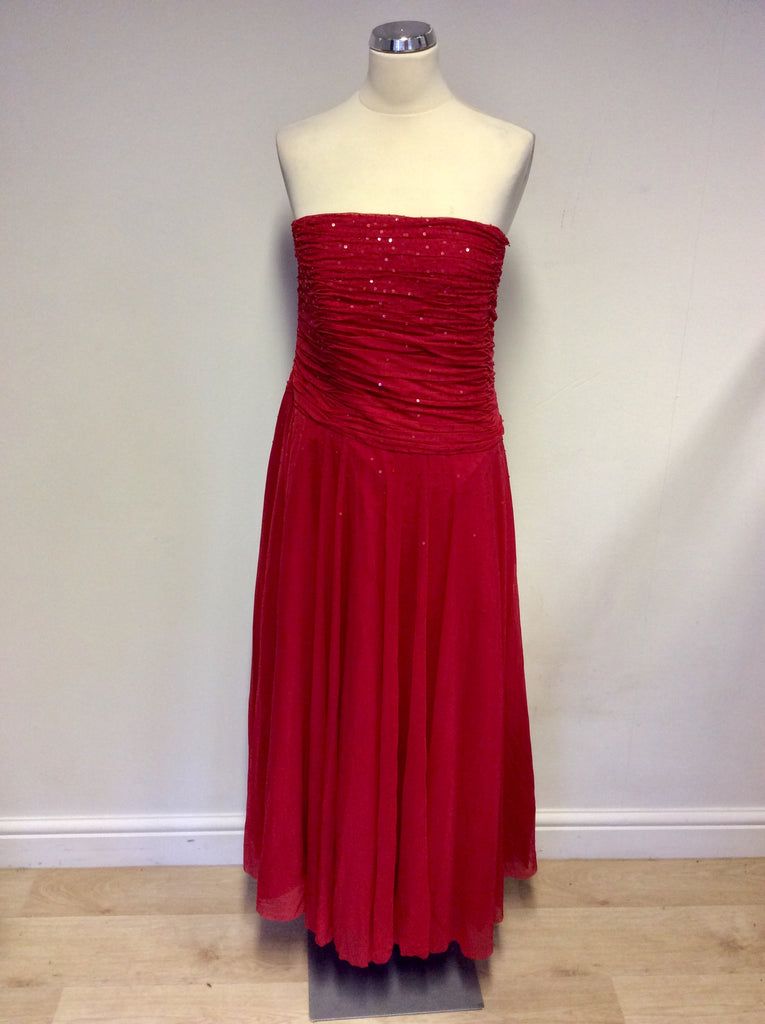 BRAND NEW MONSOON RED SEQUINNED NET OVERLAY EVENING DRESS SIZE 18