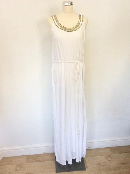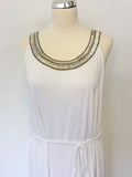 BRAND NEW MONSOON WHITE BEADED TRIM SLEEVELESS TIE WAIST MAXI DRESS SIZE M