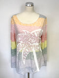 BRAND NEW OUI PASTEL MULTI COLOURED STRIPE SEQUINNED TRIM LONG SLEEVE TOP SIZE 16
