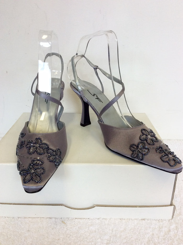 BRAND NEW SF SILVER SATIN BEADED SPECIAL OCCASION HEELS SIZE 5/38