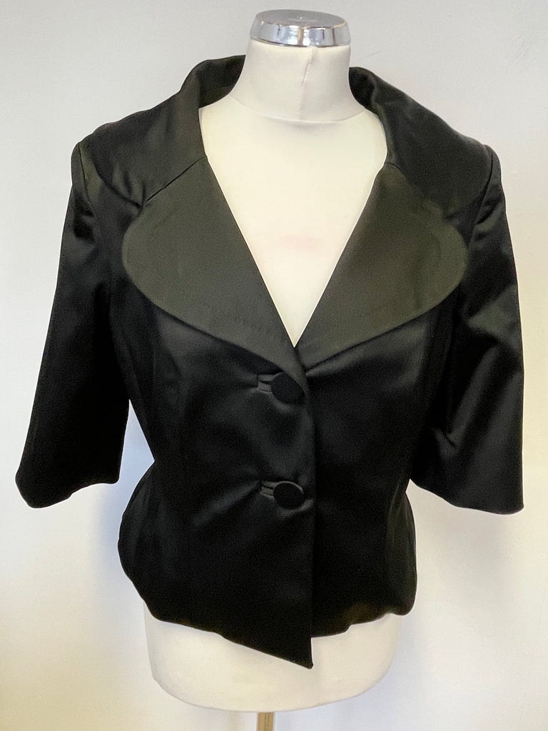COAST BLACK SATIN FITTED HALF SLEEVE SPECIAL OCCASION/ EVENING JACKET SIZE 14