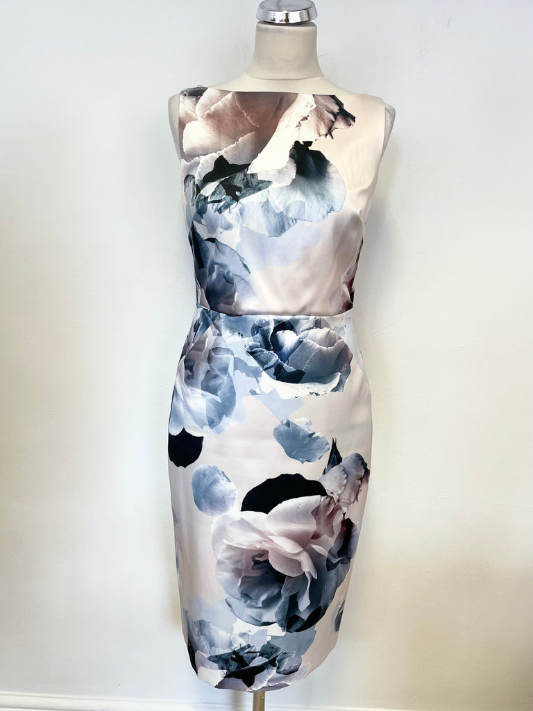 COAST IVORY,PINK & BLUE FLORAL PRINT SLEEVELESS SPECIAL OCCASION PENCIL DRESS SIZE 10