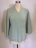 COS LIGHT GREEN CHUNKY KNIT V NECK JUMPER SIZE S