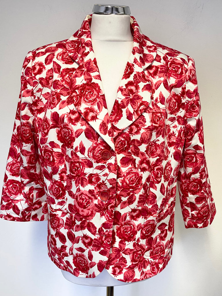 COTSWOLD COLLECTION RED & WHITE FLORAL PRINT COTTON JACKET SIZE 18