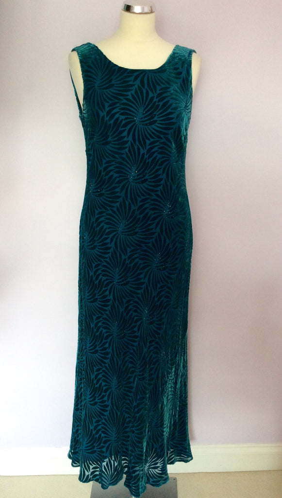 Country Casuals Kingfisher Green Beaded Trim Dress Size 14