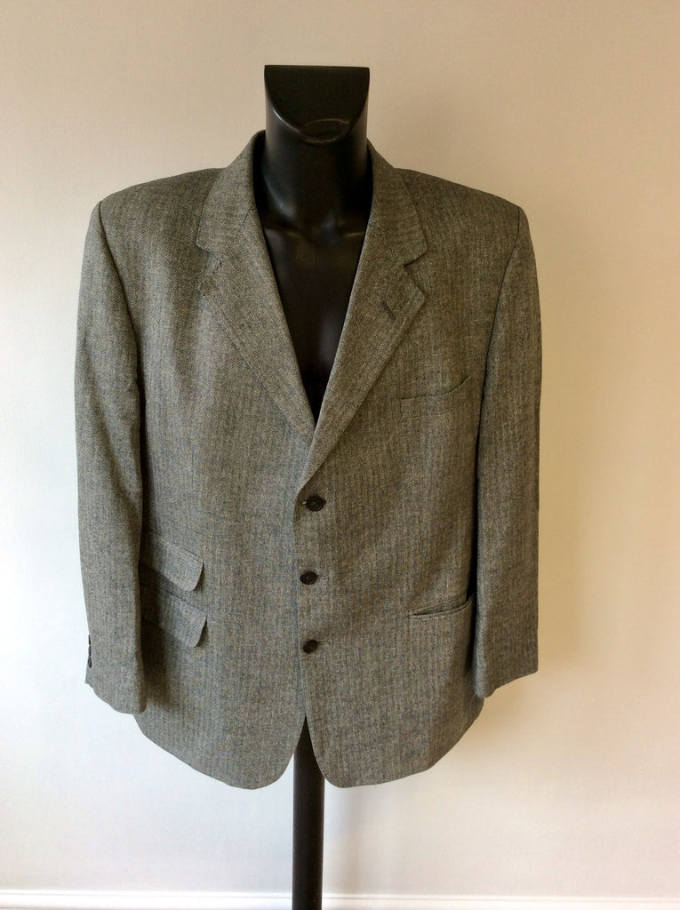 DAKS SIGNATURE GREY STRIPE 100% SILK TAILORED JACKET SIZE 48