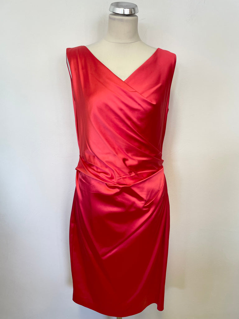 DAMSEL IN A DRESS RED SATIN DRAPED SPECIAL OCCASION/ COCKTAIL PENCIL DRESS SIZE 14