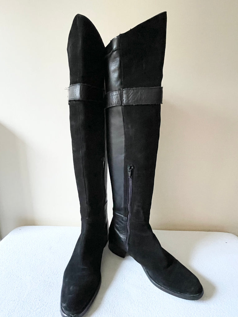 DESIGNER LAVORIZIONE ARTIGIANA SUEDE & LEATHER WITH FAUX LEATHER STRETCH KNEE LENGTH BOOTS SIZE 6/39