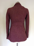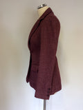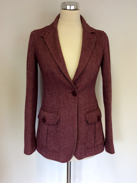 DKNY BURGUNDY HERRINGBONE WEAVE WOOL BLEND JACKET SIZE S
