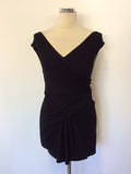 DONNA KARAN COLLECTION BLACK WRAP ACROSS STRETCH TOP SIZE S