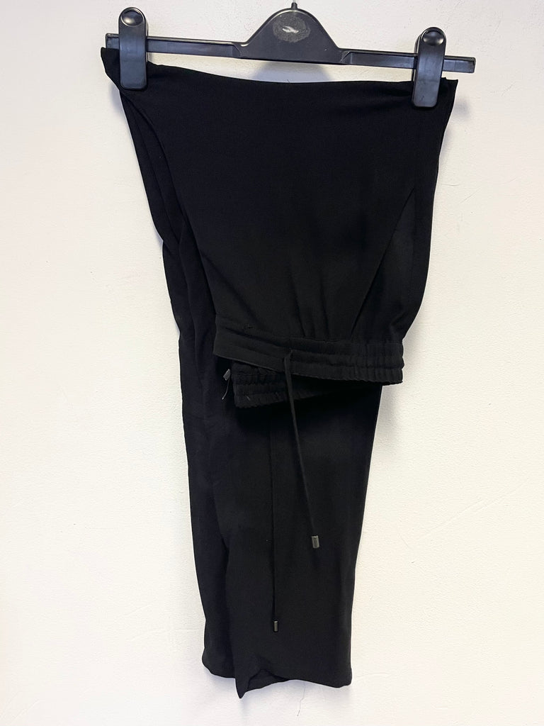 EILEEN FISHER 100% SILK BLACK ELASTICATED WAIST TAPERED LEG TROUSERS SIZE APPROX UK 14-18