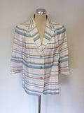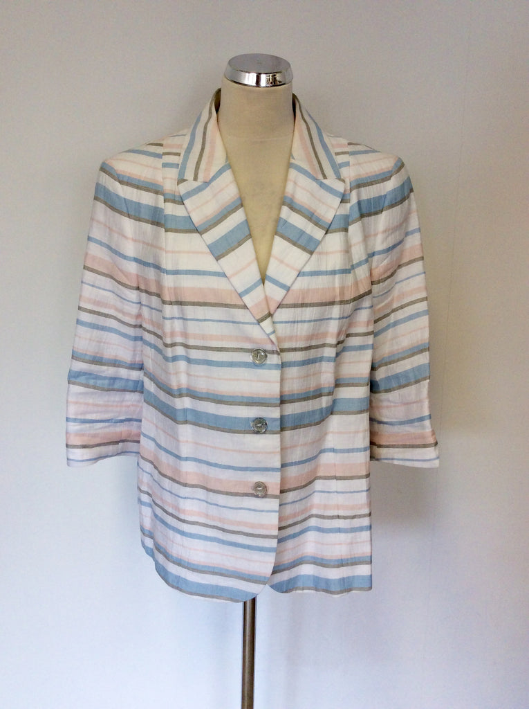 EUGEN KLEIN WHITE,PINK,BLUE & GREEN STRIPED LINEN BLEND JACKET SIZE 18