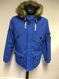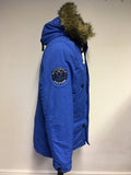 FLY 53 BLUE EXCALIBUR FAUX FUR TRIM HOOD JACKET SIZE M