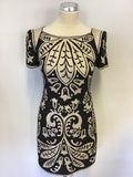 FRENCH CONNECTION BLACK & IVORY EMBROIDERED & BEADED SHIFT DRESS SIZE 14