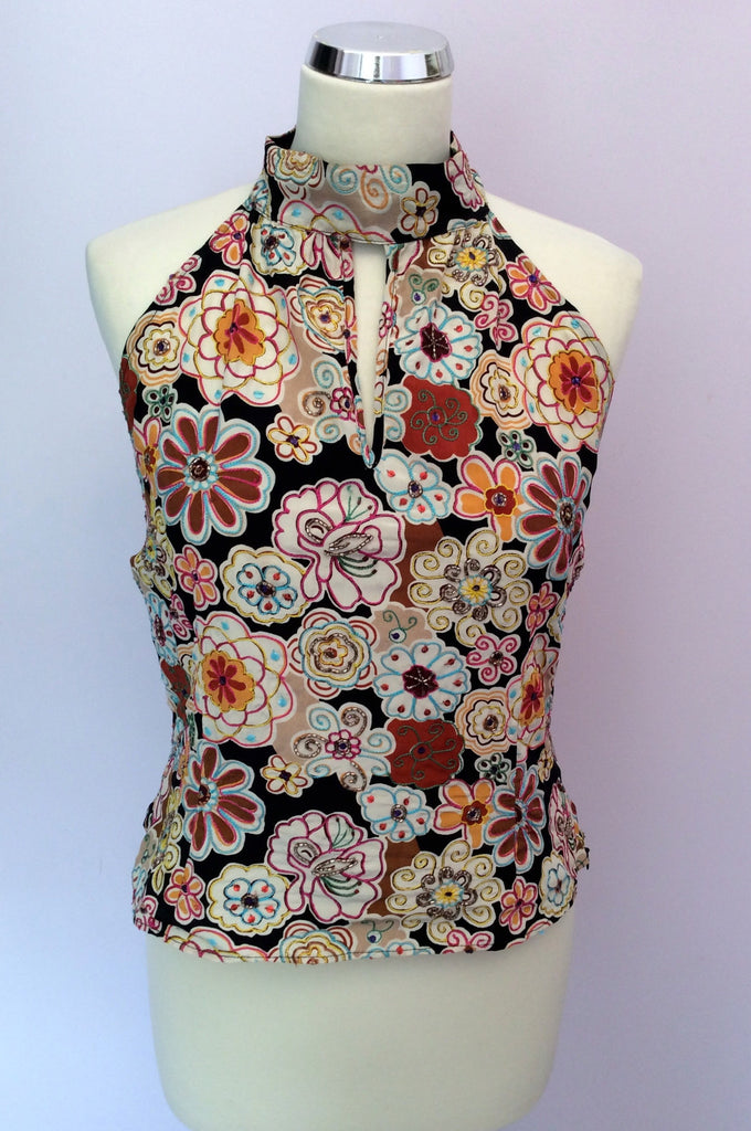 Gerard Darel Floral Print Silk Halterneck Top Size 42 UK 14