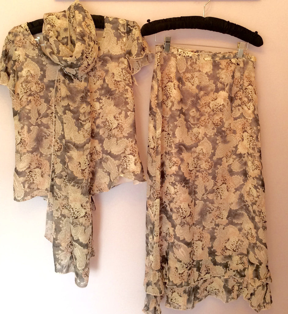 Gold By Michael H Pink & Grey Print Top, Skirt & Wrap Outfit Size 10
