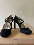 HOBBS BLACK SUEDE CROSS OVER STRAP HEELS SIZE 5.5/38.5
