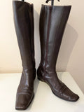 HOBBS DARK BROWN LEATHER LOW HEEL KNEE LENGTH BOOTS SIZE 7/40