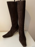 HOBBS DARK BROWN SUEDE KNEE LENGTH HEELED BOOTS SIZE 6/39