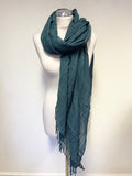 HOBBS DARK GREEN LINEN BLEND FRINGED SCARF/ WRAP