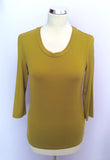 Hobbs Mustard Scoop Neck 3/4 Sleeve Top Size S