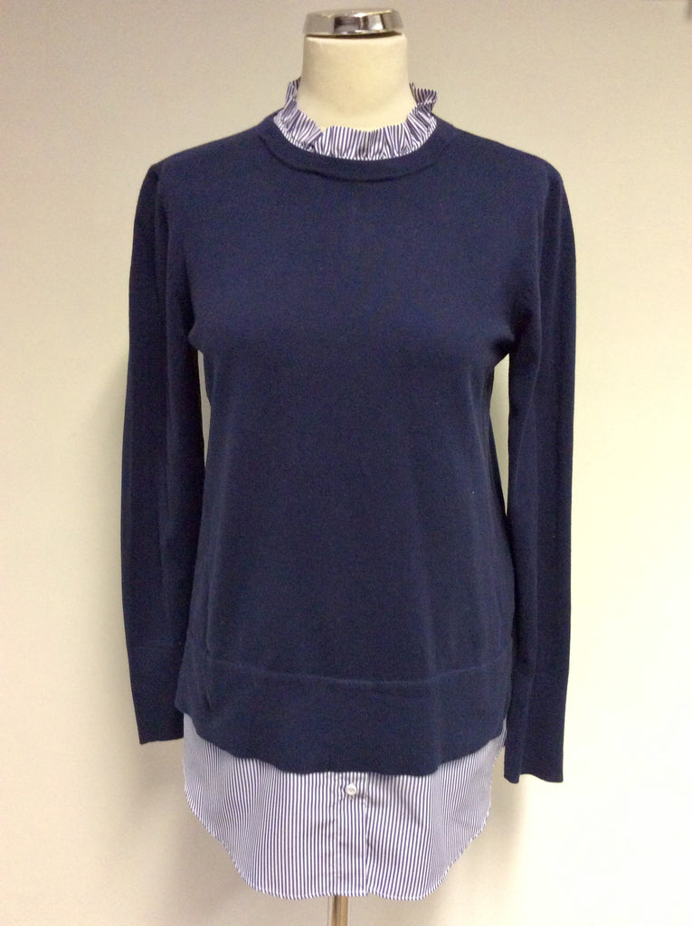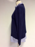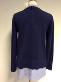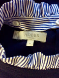HOBBS NAVY BLUE JUMPER WITH BLUE & WHITE STRIPED SHIRT TRIM SIZE M