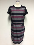 HOBBS NW3 NAVY BLUE,PINK & GREY MARL STRIPE WOOL BLEND SHIFT DRESS SIZE 16