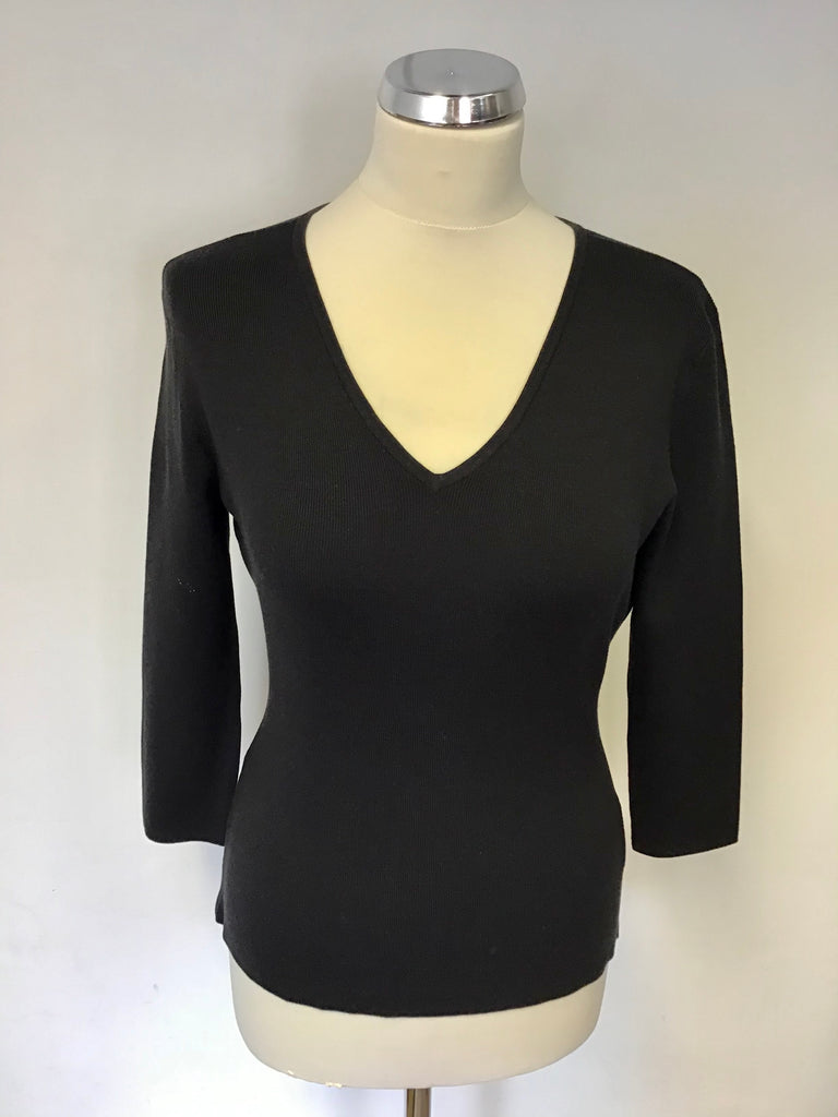JAEGER BLACK SILK BLEND V NECK JUMPER SIZE M