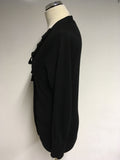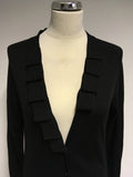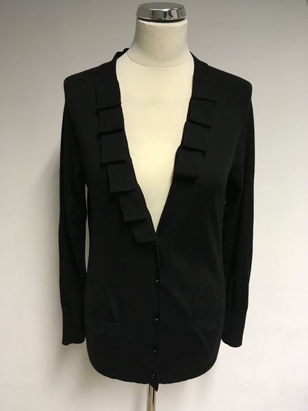 JAEGER BLACK WOOL PLEATED TRIM V NECK CARDIGAN SIZE M