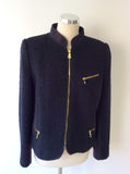 JAEGER DARK BLUE WOOL BLEND BOX JACKET SIZE 14