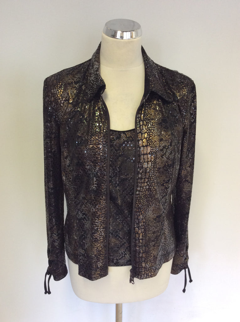 JOSEPH RIBKOFF BROWN SPARKLE SNAKESKIN PRINT CAMISOLE & JACKET