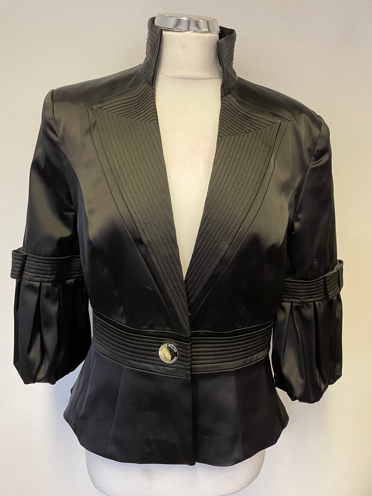 KAREN MILLEN BLACK FITTED 3/4 PLEAT TRIM SLEEVE SPECIAL OCCASION JACKET SIZE 14