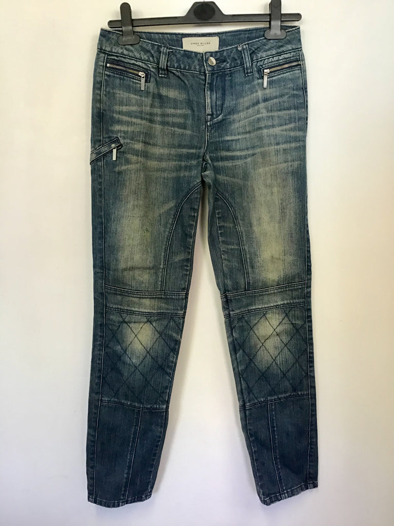 KAREN MILLEN BLUE DISTRESSED LOOK ZIP TRIM JEANS SIZE 8