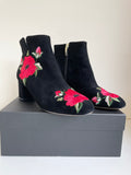 KATE SPADE BLACK SUEDE & RED EMBROIDERED POPPY ANKLE BOOTS SIZE 7/40