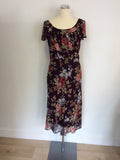 LAURA ASHLEY DARK PLUM FLORAL PRINT SILK DRESS SIZE 12