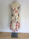 LAURA ASHLEY WHITE,PINK & GREY FLORAL PRINT DRESS SIZE 10