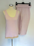 LAUREN VIDAL PALE PINK COTTON LACE TRIM VEST TOP & LINEN CROP TROUSERS SIZE M